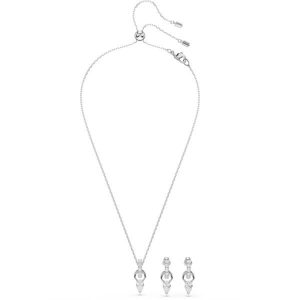 Opis produktuNaszyjnik i kolczyki z kolekcji Swarovski. Model z ozdobą z kryształów Swarovskiego, wykonany z metalu powlekanego rodem.- Długość minimalna: 38 cm.- Długość maksymalna: 45 cm.- Wymiary ozdoby: 22 mm x 13 mm.- Długość kolczyków: 22 mm.ID Produktu: 9BYA-AKD0AH_SLVKod producenta: 5723197SkładMetal, Kryształ Swarovskiego Dostępny w rozmiarze ONE .
