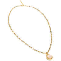 Długi naszyjnik z mleczno-różowym kryształem Elegancki i nowoczesny długi naszyjnik wykonany z łańcuszka platynowanego 24-karatowym złotem. Centralnym elementem jest duży, okrągły kryształ w mleczno-różowym odcieniu, który pięknie odbija światło i dodaje stylizacji subtelnej kobiecości. Mocniejsza, wyraźna forma łańcuszka równoważy delikatność kamienia, tworząc harmonijną kompozycję w duchu aktualnych trendów biżuteryjnych.Model ma regulowaną długość dzięki zapięciu umieszczonemu z tyłu, co pozwala dopasować go do różnych dekoltów i okazji.Cechy produktu:Materiał: łańcuszek platynowany 24-karatowym złotemDetale: duży, okrągły kryształ w mleczno-różowym kolorzeDługość: regulowana, dzięki tylnemu zapięciuStyl: klasyczna forma w powiększonej, modnej skaliZastosowanie: idealny do eleganckich i nowoczesnych stylizacjiPropozycja stylizacji:Noś naszyjnik do jedwabnej bluzki i spodni w kant, aby stworzyć nowoczesny look do pracy lub na spotkanie. Na wieczór zestaw go z sukienką w pastelowym kolorze, by dodać subtelnego blasku i romantycznego charakteru stylizacji. STOP METALI, PAT. 24K ZŁOTEM, KAMIEŃ NATURALNY