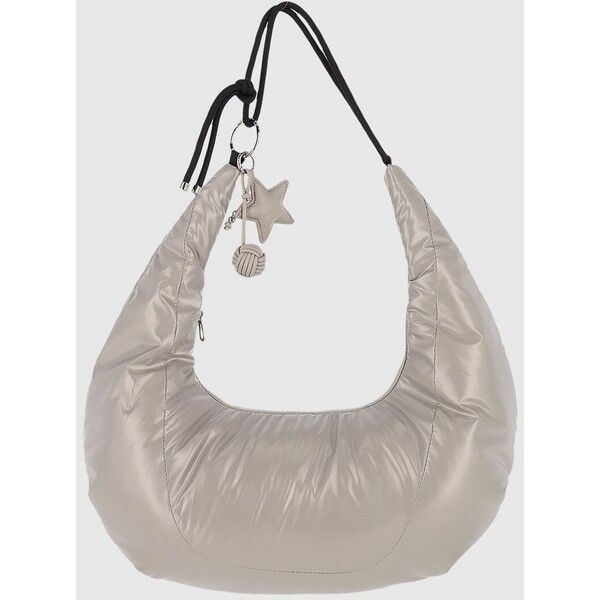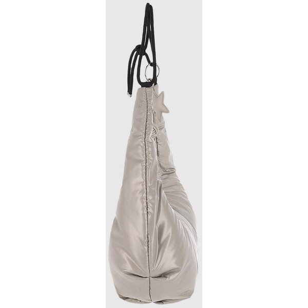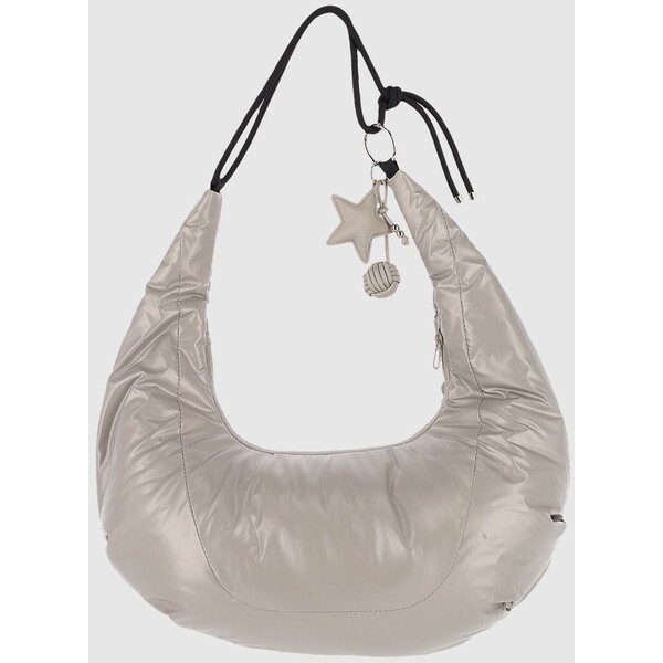Torba hobo na ramię – modny dodatek do każdej stylizacjiTorba damska w stylu hobo, w odcieniu beżu, wykonana z wysokiej jakości, połyskującego materiału. Jej opływowy kształt i miękka konstrukcja nadają jej nowoczesnego, sportowego charakteru.Torba posiada pasek na ramie w postaci czarnych sznurków z regulacją, które zapewnia wygodę noszenia. Ma też dodatkową, zapinaną kieszeń na drobiazgi.Dodatkowym elementem dekoracyjnym jest zawieszka w kształcie czerwonej gwiazdki, połączona z ozdobnym supłem, która podkreśla unikalny design torby.Idealna zarówno na co dzień jak i na wieczorne wyjścia dodając odrobinę koloru każdej stylizacji.Torba na ramię - CECHY:zakres rozmiarów: uniwersalny (one-size)wymiary: 46 x 45 cm (szerokość x wysokość)wykonana z materiału syntetycznego, który zapewnia trwałość i jest łatwy w pielęgnacjiregulowany sznurek pozwalający na noszenie torby na ramieniukomora główna na zamekwewnętrzna, zapinana kieszeń na drobiazgidołączony ozdobny brelok