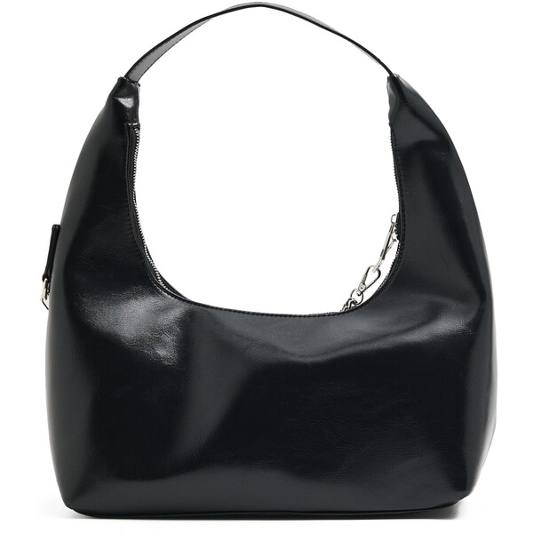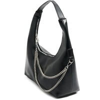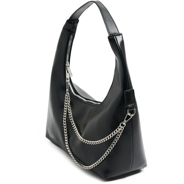 Stylowa torebka hobo dla kobiet, wykonana z czarnej imitacji skóry. Ozdobą tego modelu jest łańcuszek, który możesz przyczepić jak chcesz. Idealny dodatek do stylizacji na koncert lub inny event.torebka o fasonie hoboimitacja skórygłówna komora z zapięciem na zamekodpinany łańcuch. Rodzaj torebka, hobo. Cechy mniejsze niż A4, na pasku, na ramię, all. Materiał łączone materiały, tkanina, skóra syntetyczna. Wzór gładki. SIDE MENU - Torby, plecaki, nerki torebki. Dostępny w rozmiarze uniwersalny .