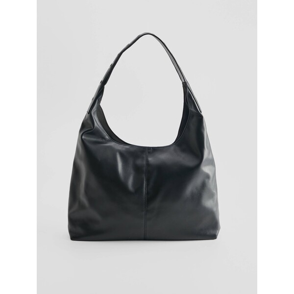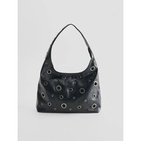 metalowe detale w srebrnym kolorzezapięcie na zamekCzarna torba typu hobo bag z półokrągłym zapięciem.Mieszcząca format A4 torba ze sztucznej skóry ozdobiona metalowymi oczkami. Jest zapinana na zatrzask, a w środku ma podszewkę z małą kieszonką na drobiazgi.Wymiary produktu: 28 cm x 40 cm x 10 cm. kategorie-torebki-plecaki kategoria TORBY. KATEGORIE - TORBY DUŻE TORBY. Dostępny w rozmiarze One Size .