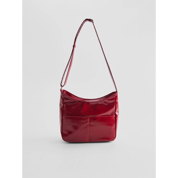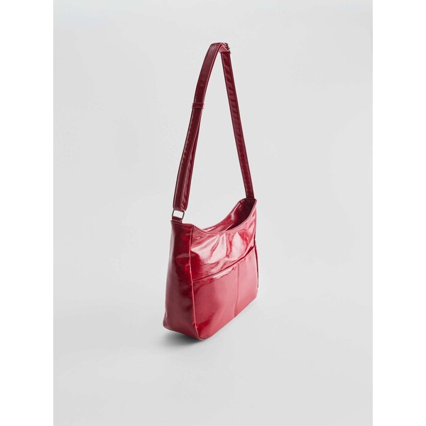 zapięcie na zamekpasek z możliwością regulacji długościCzerwona torebka na ramię ze sztucznej połyskującej skóry.Torebka ma minimalistyczny design z kieszeniami na zewnątrz. Jej rozmiar na spokojnie pomieści format A4. Torebka posiada zapięcie na zamek. Wnętrze jest wykończone podszewką.Wymiary produktu: 26 cm x 37 cm x 12,5 cm. kategorie-torebki-plecaki kategoria TORBY. KATEGORIE - TORBY DUŻE TORBY. Dostępny w rozmiarze One Size .