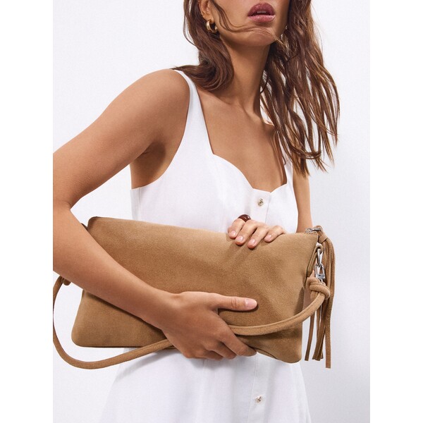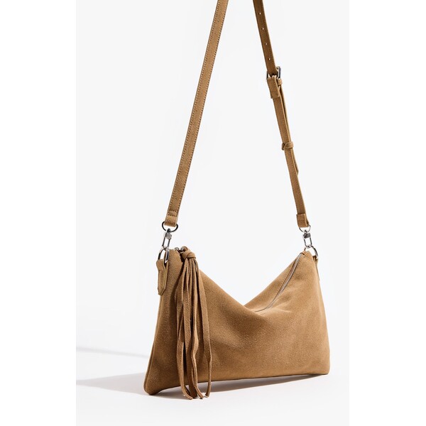 Skórzana torebka z paskiem na ramię i zapięciem na zamek. Posiada ozdobny brelok z frędzlami.pasek na ramięzapięcie na zamekozdobny brelok100% skóraWymiary torebki: 21 x 34.5 cm. Rodzaj na ramię, premium bags. side_menu_bags na ramię, premium bags. Dostępny w rozmiarze One Size .
