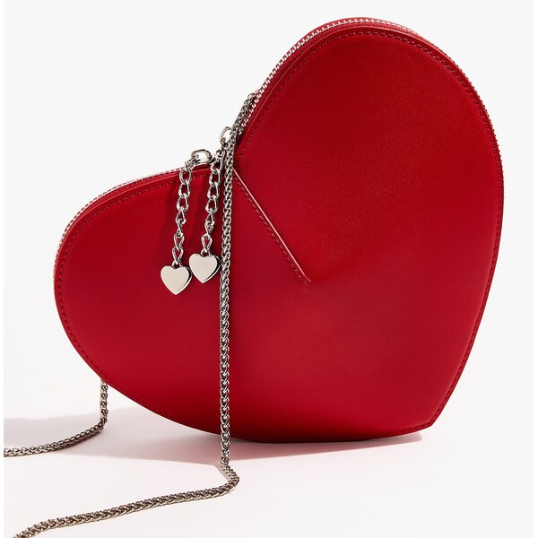 Torebka w kształcie serca, z łańcuszkiem.w kształcie sercałańcuszek na ramięzapięcie na zamekWymiary torebki: 20 x 23 x 9 cm. Rodzaj przez ramię, do ręki, na ramię.