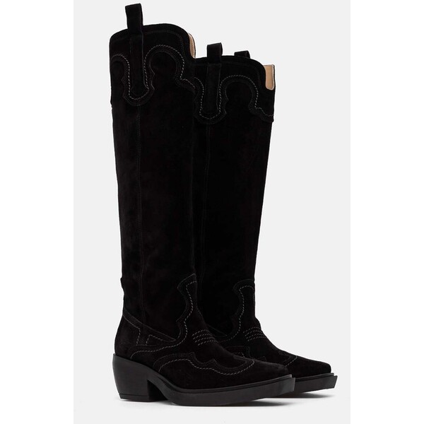 Kowbojki z kolekcji Copenhagen wykonane ze skóry zamszowej. Model z gumową podeszwą zewnętrzną, która jest wytrzymała i odporna na uszkodzenia. - Spiczasty, usztywniony nosek.- Mocno usztywniony zapiętek stabilizuje piętę i utrzymuje stopę w bucie, tak aby nie wysuwała się podczas ruchu.- Model ze skórzanym wnętrzem, które jest komfortowe dla stopy i zapobiega odparzeniom, otarciom oraz pojawianiu się nieprzyjemnego zapachu.- Model na stabilnym obcasie.- Wysokość cholewki: 43 cm.- Obwód cholewki: 48,5 cm.- Wysokość obcasa: 6,5 cm.- Długość wkładki wynosi: 26,5 cm.- Wymiary podane dla rozmiaru: 37. Cholewka: Skóra zamszowa, Wnętrze: Skóra naturalna, Podeszwa: Materiał syntetyczny Dostępny w rozmiarach 36 37 38 39 40 41 .