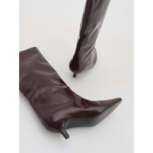 Buty typu kozaki, wykonane z imitacji skóry.nosek w szpicwysoka cholewkaobcas typu kittenWysokość obcasa: 4,5 cm. Rodzaj kozaki. Wzór gładkie. Cechy na obcasie, na szpilce, obcas kitten. Materiał imitacja skóry. Dostępny w rozmiarach 35 36 37 38 39 40 41 42 .