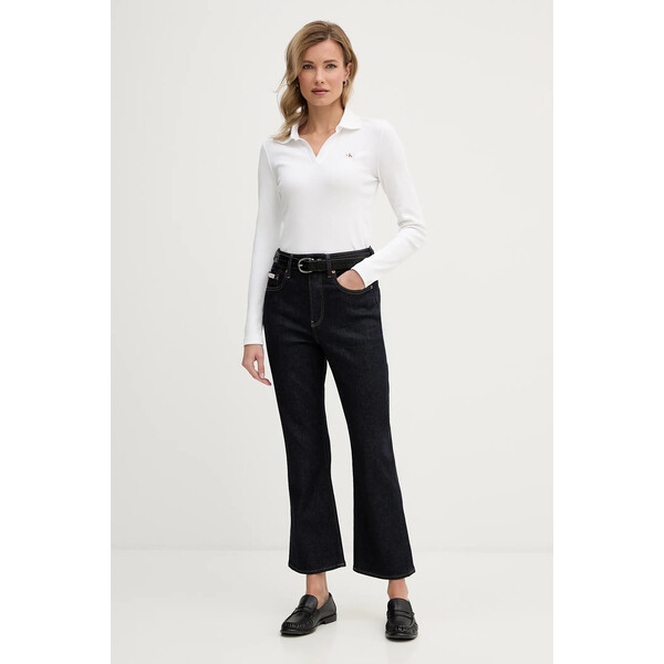 Calvin Klein Jeans longsleeveLongsleeve z kolekcji Calvin Klein Jeans wykonany z elastycznej, bawełnianej dzianiny. Model z wyjątkowo komfortowego materiału z wysoką zawartością bawełny.- Dopasowany, podkreślający sylwetkę fason.- Spiczasty dekolt.- Model z miękkim kołnierzykiem.- Prążkowana struktura materiału sprawia, że jest on niezwykle elastyczny i doskonale przylega do ciała.- Długość rękawa: 63 cm.- Długość: 56 cm.- Szerokość pod pachami: 40 cm.- Wymiary podane dla rozmiaru: S.Dane produktuKod producentaLV047E203GKolorbiałyMarkaCalvin Klein JeansID ProduktuPPY2-BUD005_00XSkład94 % Bawełna, 6 % ElastanWymiaryModelka ma 177 cm wzrostu i ma na sobie rozmiar S.Rozmiarówka standardowaZalecamy wybór rozmiaru, jaki nosisz zazwyczaj. Rekomendacja w oparciu o wymiary produktu i rozmiarówkę marki.Tabela rozmiarów Dostępny w rozmiarach XS XXS .
