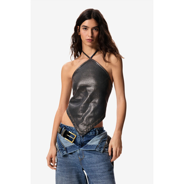 Szczegóły produktu Bluzka bez ramiączek z denimu z kołnierzem halter z tkaniny bawełnianej z elastanem. Fason bez rękawów i w kolorze średniego spranego brązu z efektem zużycia. Zapięcie na regulowany sznurek przy szyi.Fason: RegularTkanina denim z bawełny z elastanemKolor: średni sprany brązKołnierz: halterMASHA POPOVAZapięcie: regulowany sznurek Wymiary modela: Wzrost: 180 cm Rozmiar modelki: M SKU: 26SWBD025053 Product Sustainability Better Cotton Skład i wskazówki dotyczące pielęgnacji Skład części wewnętrznej: 99% BAWEŁNA, 1% ELASTAN Wysyłka i zwroty Wysyłka: Bezpłatna wysyłka od 250 ZŁ. Zwroty: Masz 30 dni na zwrot produktów. Jak dokonać zwrotu? *Z wyjątkiem bielizny i strojów kąpielowych. Cechy środowiskowe Tkanie: This information will be available soon Farbowanie i drukowanie: This information will be available soon Produkcja: Turkey Produkt zawierający co najmniej 0% materiałów pochodzących z recyklingu Dostępny w rozmiarach L/XL S/M .