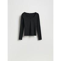 Bluzka o prostym kroju, wykonana z gładkiej dzianiny z dodatkiem bawełny i modalu.dekolt V z koronkową wstawkądługie, dopasowane rękawy. Krój dopasowane. Cechy długi rękaw, dekolt V. Wzór gładkie. Materiał bawełna, modal. Rodzaj bluzka. Dostępny w rozmiarach L M S XL XS .