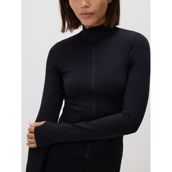 Bluza o dopasowanym kroju, wykonana z elastycznej dzianiny.wysoka stójkadługie, dopasowane rękawyzapięcie na zamekmodelujące zaszewkiModelka prezentuje produkt w rozmiarze S. Wzrost modelki: 174 cm. Cechy bez kaptura, rozpinane, ze stójką. Rodzaj bluzy. Krój regular. Wzór gładkie. Dostępny w rozmiarach L M S .
