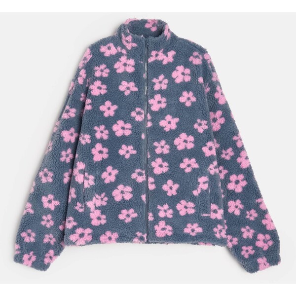 Modelka prezentuje produkt w rozmiarze S/36. Wzrost modelki: 175 cm. Produkt Bluzy. Długość regular. Dekolt stójka. Zapięcie zamek błyskawiczny. Rękawy długie, wykończone ściągaczem. Kieszenie kieszenie. Materiał poliester, z barankiem. Wzór wzorzysty. Krój regular. Styl casual. Okazja na co dzień. Cechy rozpinane, bez kaptura, z ociepleniem, sherpa, ściągacze, obniżona linia ramion. Kolor niebieski, różowy. Dział Kobieta. Sezon jesień, zima. Dostępny w rozmiarach L M S XL XS .