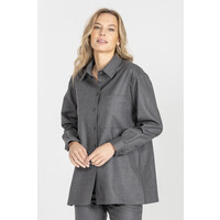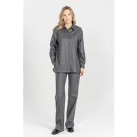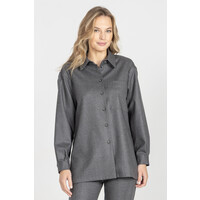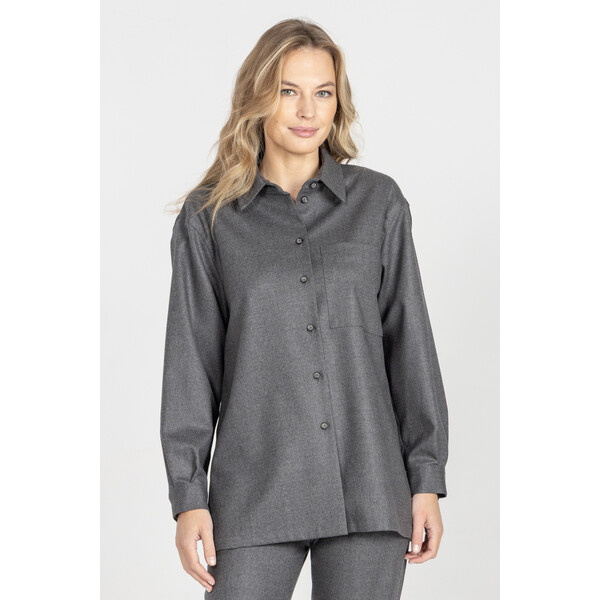 Koszula z włoskiej flaneli w męskim styluNowoczesna koszula w prostym, męskim stylu to jeden z kluczowych kierunków w damskiej modzie. Ten model, wykonany z wysokogatunkowej, włoskiej flaneli, łączy wygodę z wyrafinowaną surowością i minimalistyczną linią, tworząc idealną bazę do modnych, współczesnych stylizacji.Koszula jest luźna, pozbawiona podszewki, dzięki czemu układa się miękko i naturalnie na sylwetce. Konstrukcja jednorzędowa, bez poduszek, została świadomie zaprojektowana z nowocześnie poszerzonymi ramionami, wpisując się w aktualne trendy oversize i struktur inspirowanych modą męską.Melanżowy, szary odcień podkreśla miękkość materiału, a efekt delikatnego drapania typowego dla flaneli nadaje jej przyjemną, ciepłą fakturę. To klasyk, który idealnie łączy praktyczność z luksusem tkaniny.Dla pełnego efektu koszulę warto zestawić z szerokimi spodniami z tej samej wełny, tworząc wyważony, monochromatyczny look w duchu nowoczesnego minimalizmu.Cechy produktuMateriał: wysokiej jakości włoska flanelaKolor: szary melanżKrój: luźny, oversizeKonstrukcja: jednorzędowa, bez podszewki, bez poduszekDetale: nowocześnie poszerzone ramionaStyl: męski, minimalistyczny, nowoczesnyPropozycja stylizacjiZestaw koszulę ze spodniami z tej samej flaneli, tworząc monochromatyczny garnitur o męskiej, eleganckiej linii. Dodaj masywne loafersy lub botki oraz minimalistyczną biżuterię, by dopełnić look w duchu współczesnej, wyważonej mody. 98% WEŁNA, 2% ELASTAN Dostępny w rozmiarach 34 36 38 40 42 44 46 .