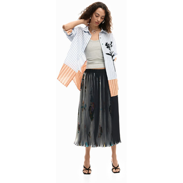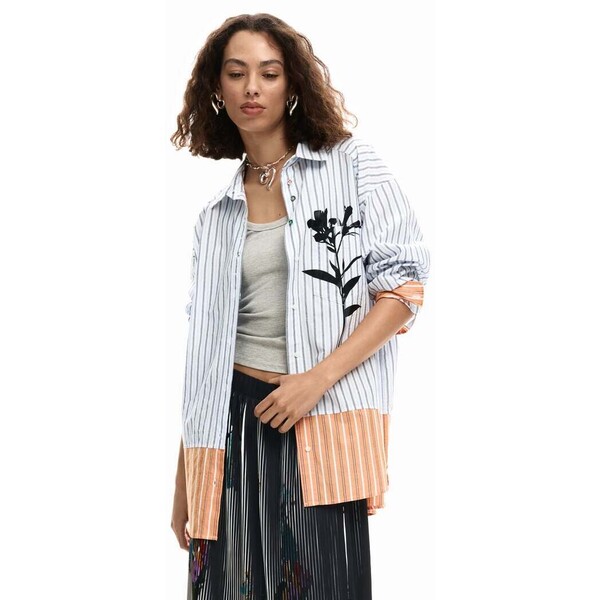 Szczegóły produktu Długa koszula oversize z paskami w dwóch kolorach i nadrukiem kwiatowym z przodu.Kolor: MultikolorFason: OversizeKołnierzyk: KoszulowyRękaw: DługiZapięcie: Na guzikiWzór w paski w dwóch kolorachKieszeń z przoduDekoracyjne szwyKolekcja SS26Zaproj. w Barcelonie Wymiary modela: Wzrost: 180 cm; Talia: 63 cm; Biodra: 93 cm Rozmiar modelki: M SKU: 26SWCW032024 Product Sustainability Better Cotton Skład i wskazówki dotyczące pielęgnacji Skład części wewnętrznej: 100% BAWEŁNA Wysyłka i zwroty Wysyłka: Bezpłatna wysyłka od 250 ZŁ. Zwroty: Masz 30 dni na zwrot produktów. Jak dokonać zwrotu? *Z wyjątkiem bielizny i strojów kąpielowych. Cechy środowiskowe Farbowanie i drukowanie: China Produkcja: China Dostępny w rozmiarach L M S .