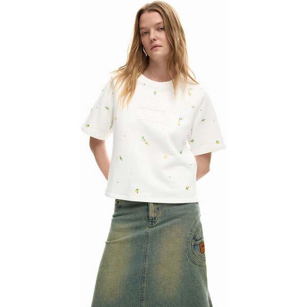 Szczegóły produktu Koszulka o kroju regular z wypukłym napisem "Desigual" z tkaniny w tym samym odcieniu oraz z kolorowymi aplikacjami z cekinów.Kolor: MultikolorFason: RegularDekolt: OkrągłyRękaw: KrótkiAplikacja tekstu "Desigual" w tym samym tonieHaftowane cekinyDetale z połyskiemKolekcja SS26Projektowane w Barcelonie SKU: 26SWTK091001 Product Sustainability Better Cotton Skład i wskazówki dotyczące pielęgnacji Skład części wewnętrznej: 100% BAWEŁNA Wysyłka i zwroty Wysyłka: Bezpłatna wysyłka od 250 ZŁ. Zwroty: Masz 30 dni na zwrot produktów. Jak dokonać zwrotu? *Z wyjątkiem bielizny i strojów kąpielowych. Cechy środowiskowe Produkcja: India Dostępny w rozmiarach L M S XL XS .