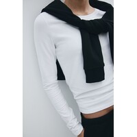 Podkreślający figurę top z miękkiego bawełnianego dżerseju. Okrągły dekolt i długie rękawy. Dostępny w rozmiarach L M S XL XS XXL .