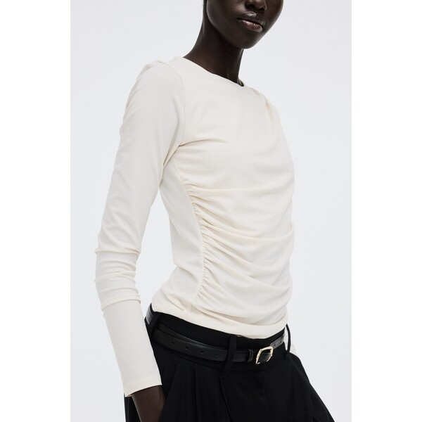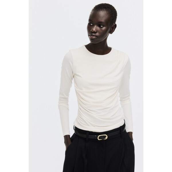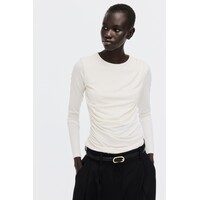 Podkreślający figurę top z krepowanego dżerseju. Długie rękawy, okrągły dekolt. Na jednym ramieniu i na jednym boku marszczenie tworzące efekt lekkiego drapowania.