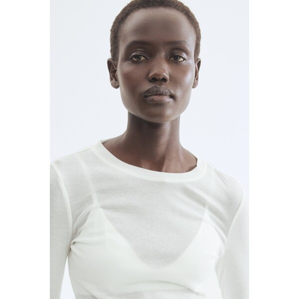 Fitted top in sheer pima cotton jersey with a round neckline and extra-long sleeves. Dostępny w rozmiarach L M S XL XS .