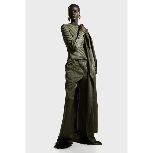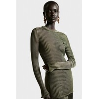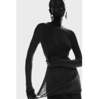 Top z prześwitującej dzianiny w prążki. Długie rękawy, okrągły dekolt ze ściągaczem. Zrolowane brzegi rękawów i dołu. Dostępny w rozmiarach L M S XL XS .