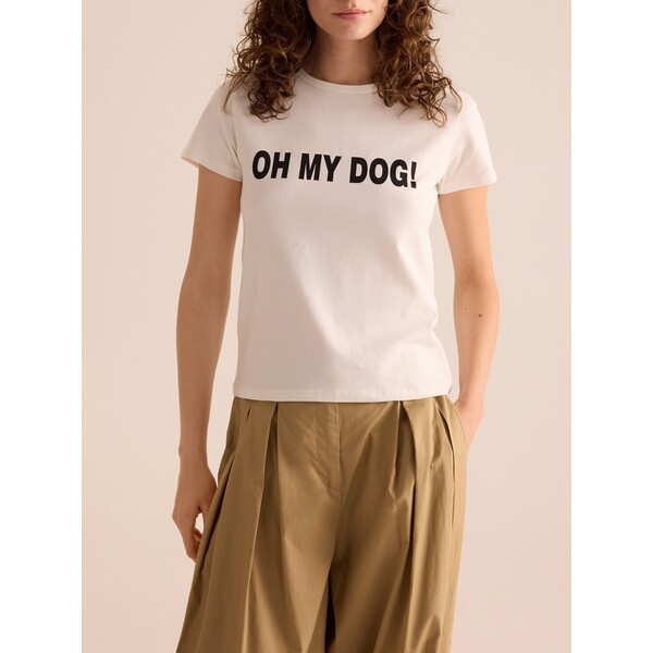 T-shirt o prostym kroju, wykonany z bawełnianej dzianiny.okrągły dekoltkrótkie rękawynadruk z przoduModelka prezentuje produkt w rozmiarze S/36. Wzrost modelki: 177 cm. Typ produktu t-shirt. Krój regular. Wzór nadruk. Cechy krótki rękaw, dekolt okrągły. Materiał bawełna. Dostępny w rozmiarach L M S XL XS .