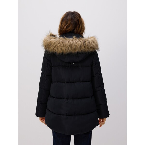 Kurtka o swobodnym fasonie, wykonana z pikowanej tkaniny z wypełnieniem.kaptur z imitacją futradługie rękawyzapięcie na zamek i napydwie kieszenie boczneModelka prezentuje produkt w rozmiarze S/36. Wzrost modelki: 177 cm. Rodzaj kurtka. Krój regular. Wzór gładkie. Cechy na zamek, ocieplane, pikowane, z kapturem. Dostępny w rozmiarach L M S XL XS XXL .