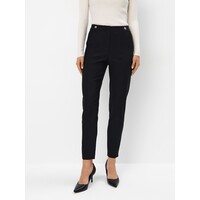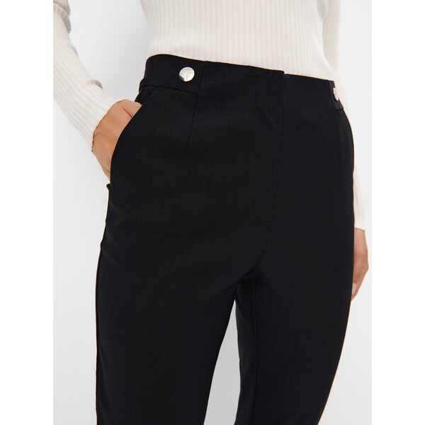 Eleganckie spodnie o dopasowanym kroju w czarnym kolorze. Posiadają ozdobne guziki z przodu.dopasowany krójregularny stanzapięcie na zamek i haftkędwie kieszenie boczneozdobne guzikiModelka prezentuje produkt w rozmiarze S/36 Wzrost modelki 177 cm 76% WISKOZA, 21% POLIAMID, 3% ELASTAN WYPRZEDAŻ Dostępny w rozmiarach 32 34 36 38 40 42 .