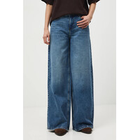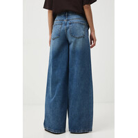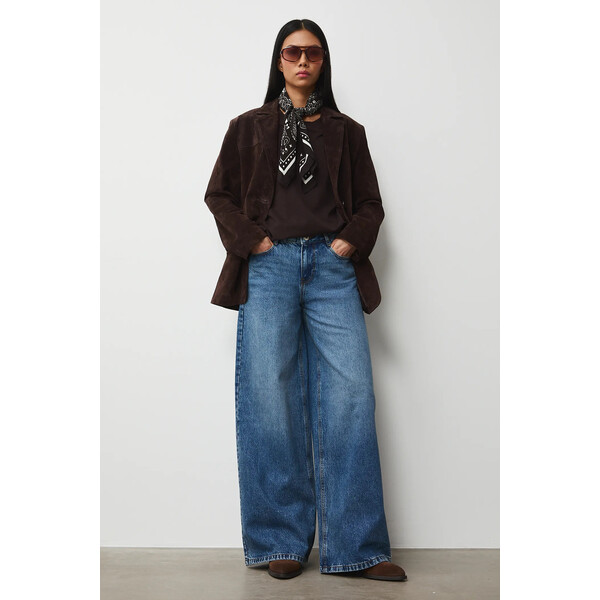 Niebieskie jeansy Medicine – luźny fason z szeroką nogawkąDamskie jeansy Medicine to jeansy wide leg, które sprzyjają swobodzie ruchów i modnemu wyglądowi dla osób ceniących komfort i aktualne trendy. Ich regularny stan oraz szerokie nogawki tworzą nowoczesną sylwetkę, a uniwersalny, niebieski kolor z efektem sprania sprawia, że są doskonałym wyborem do różnorodnych stylizacji, podkreślając indywidualny styl.Co sprawia, że damskie jeansy Medicine w fasonie wide leg są wyjątkowe?Jeansy typu wide leg, które sprzyjają swobodzie ruchów i modnemu wyglądowiRegularny stan komfortowo układa się na sylwetce, wspomagając wygodę noszeniaWykonane w 100% z naturalnej bawełny, co pozwala skórze oddychaćPraktyczne zapięcie na guzik i zamek ułatwia szybkie zakładanie i zdejmowanieMateriał z efektem sprania nadaje jeansom unikatowy, stylowy charakterWsuwane kieszenie boczne i tylne są funkcjonalnym miejscem na drobiazgiCechy produktuZapięciena guzik i zamekDane produktuKod producentaRS26-SJD302KolorniebieskiMarkaMedicineID ProduktuZPY2-SJD302_55JMateriałMateriał główny:100% BawełnaPodszewka kieszeni:100% BawełnaWskazówki pielęgnacyjne: Nie wybielać.Nie suszyć w suszarce bębnowej.Prasować w maks. temp. 110C.Nie czyścić chemicznie.Prać w maks. temp. 30C – program bardzo delikatny.KrójFason jeansów: wide legStan: regularnyWymiaryDługość wewnętrzna nogawki: 82 cmSzerokość nogawki na dole: 31 cmSzerokość w pasie: 37 cmSzerokość w biodrach: 49 cmWysokość stanu: 27 cmModelka ma 174 cm wzrostu i ma na sobie rozmiar 36.Rozmiarówka standardowaZalecamy wybór rozmiaru, jaki nosisz zazwyczaj.Zobacz wymiary produktu Dostępny w rozmiarach 34 36 38 40 42 .