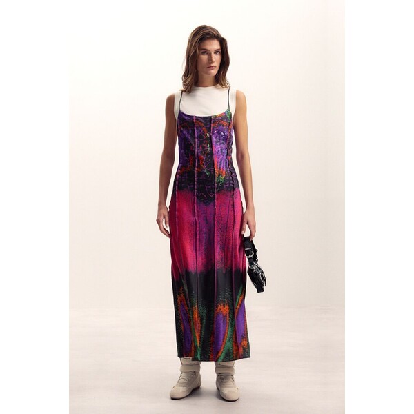 Szczegóły produktu Długa sukienka na ramiączkach z nadrukiem zaprojektowana przez Mr. Christian Lacroix, połączona z białą koszulką pod spodem.Kolor: MulticolorFit: RegularBez rękawówDługość: DługiDługość: DługiWzór inspirowany etnicznościąZaprojektowane w BarcelonieMr. Christian Lacroix Wymiary modela: Wzrost: 178 cm; Talia: 60 cm; Biodra: 90 cm Rozmiar modelki: S SKU: 26SWVW423062 Product Sustainability Responsibly Sourced Fiber Skład i wskazówki dotyczące pielęgnacji Skład części wewnętrznej: 100% WISKOZA Skład części zewnętrznej: 100% WEŁNA Wysyłka i zwroty Wysyłka: Bezpłatna wysyłka od 250 ZŁ. Zwroty: Masz 30 dni na zwrot produktów. Jak dokonać zwrotu? *Z wyjątkiem bielizny i strojów kąpielowych. Cechy środowiskowe Tkanie: China Farbowanie i drukowanie: China Produkcja: China Dostępny w rozmiarach L M S XL XS .