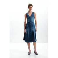Szczegóły produktu Sukienka bez rękawów z tkaniny denim o prostym kroju i z guzikami z przodu. Dekolt w serek i pasek w talii w komplecie. Długość do kostek z widocznymi ozdobnymi przeszyciami. Krój: prostyTkanina denimDekolt w serekBez rękawówZapięcie: na guzikiRegulowany pasek w taliiDługość: do kostekWidoczne dekoracyjne przeszycia SKU: 26SWVDX05053 Skład i wskazówki dotyczące pielęgnacji Skład części wewnętrznej: 89% LYOCELL, 11% BAWEŁNA Wysyłka i zwroty Wysyłka: Bezpłatna wysyłka od 250 ZŁ. Zwroty: Masz 30 dni na zwrot produktów. Jak dokonać zwrotu? *Z wyjątkiem bielizny i strojów kąpielowych. Cechy środowiskowe Tkanie: China Farbowanie i drukowanie: China Produkcja: China Dostępny w rozmiarach L M S XL XS .