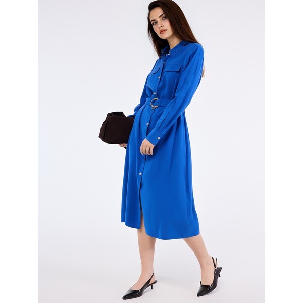 Koszulowa sukienka o długości midi z paskiem i zapięciem na zatrzaski.koszulowy krójklasyczny kołnierzdługie rękawypasek w talii94% wiskoza. Materiał wiskoza. Krój o kroju litery A, szmizjerka. Długość midi. dress-characteristics długi rękaw. Wzór gładkie. side_menu_dresses midi, maxi dress. Dostępny w rozmiarach 32 34 36 38 40 42 44 46 .