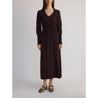 Sukienka midi o swobodnym kroju wykonana z prążkowanej dzianiny z dodatkiem wiskozy.otwarty dekolt V z kołnierzykiemozdobne guziki z masy perłowejdopasowana taliadługie rękawy z mankietamiKolekcja limitowana, dostępna w e-sklepie oraz w wybranych salonach. 48% POLIESTER, 32% WISKOZA, 20% POLIAMID Dostępny w rozmiarach L M S XS .