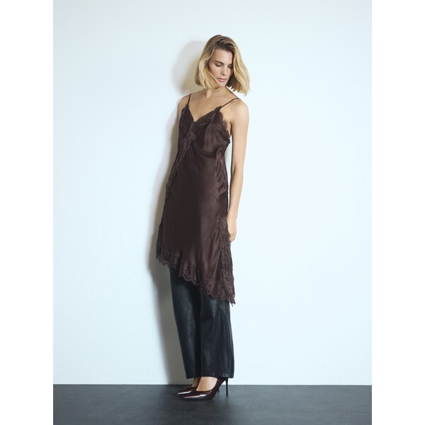 Sukienka o dopasowanym kroju, wykonana z tkaniny z wiskozy.dekolt V z koronkącienkie, regulowane ramiączkaozdobna koronkaasymetrycznie wykończony dółWzrost modelki: 177 cmKolekcje limitowane zaprojektowane są z myślą o klientach poszukujących unikalnego designu, odzwierciedlającego najnowsze światowe trendy. Dostępne w ograniczonej ilości online oraz w wybranych salonach.. Rodzaj sukienka. Krój dopasowane. Wzór gładkie. Cechy bez rękawa, koronka, mini, na ramiączkach, dekolt V. Materiał wiskoza. Dostępny w rozmiarach L M S XS .