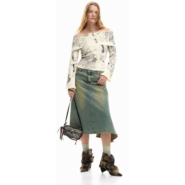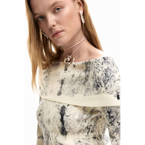 Szczegóły produktu Cienki dzianinowy sweter z teksturą, dekoltem w stylu bardot z wywinięciem i nadrukiem krajobrazu inspirowanym nordyckimi motywami.Kolor: MulticolorFit: RegularRękaw: długiWzór inspirowany krajobrazemZaprojektowane w Barcelonie SKU: 26SWJF152002 Skład i wskazówki dotyczące pielęgnacji Skład części wewnętrznej: 61% WISKOZA, 39% POLIESTER Wysyłka i zwroty Wysyłka: Bezpłatna wysyłka od 250 ZŁ. Zwroty: Masz 30 dni na zwrot produktów. Jak dokonać zwrotu? *Z wyjątkiem bielizny i strojów kąpielowych. Cechy środowiskowe Tkanie: China Farbowanie i drukowanie: China Produkcja: China Dostępny w rozmiarach L M Poinformuj mnie S XL XS .