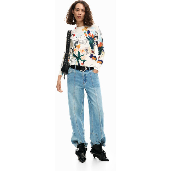 Szczegóły produktu Sweter z cienkiej dzianiny o regularnym kroju z nadrukiem w stylu kolażu i prążkowanymi detalami na rękawach i mankietach.Kolor: MulticolorFit: RegularRękaw: długiPrint w stylu kolażuZaprojektowane w Barcelonie SKU: 26SWJF351001 Skład i wskazówki dotyczące pielęgnacji Skład części wewnętrznej: 56% WISKOZA, 36% POLIAMID, 8% LEN Wysyłka i zwroty Wysyłka: Bezpłatna wysyłka od 250 ZŁ. Zwroty: Masz 30 dni na zwrot produktów. Jak dokonać zwrotu? *Z wyjątkiem bielizny i strojów kąpielowych. Cechy środowiskowe Farbowanie i drukowanie: China Produkcja: China Dostępny w rozmiarach L M Poinformuj mnie S XL XS .